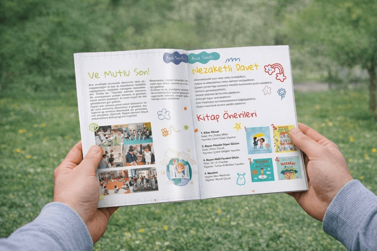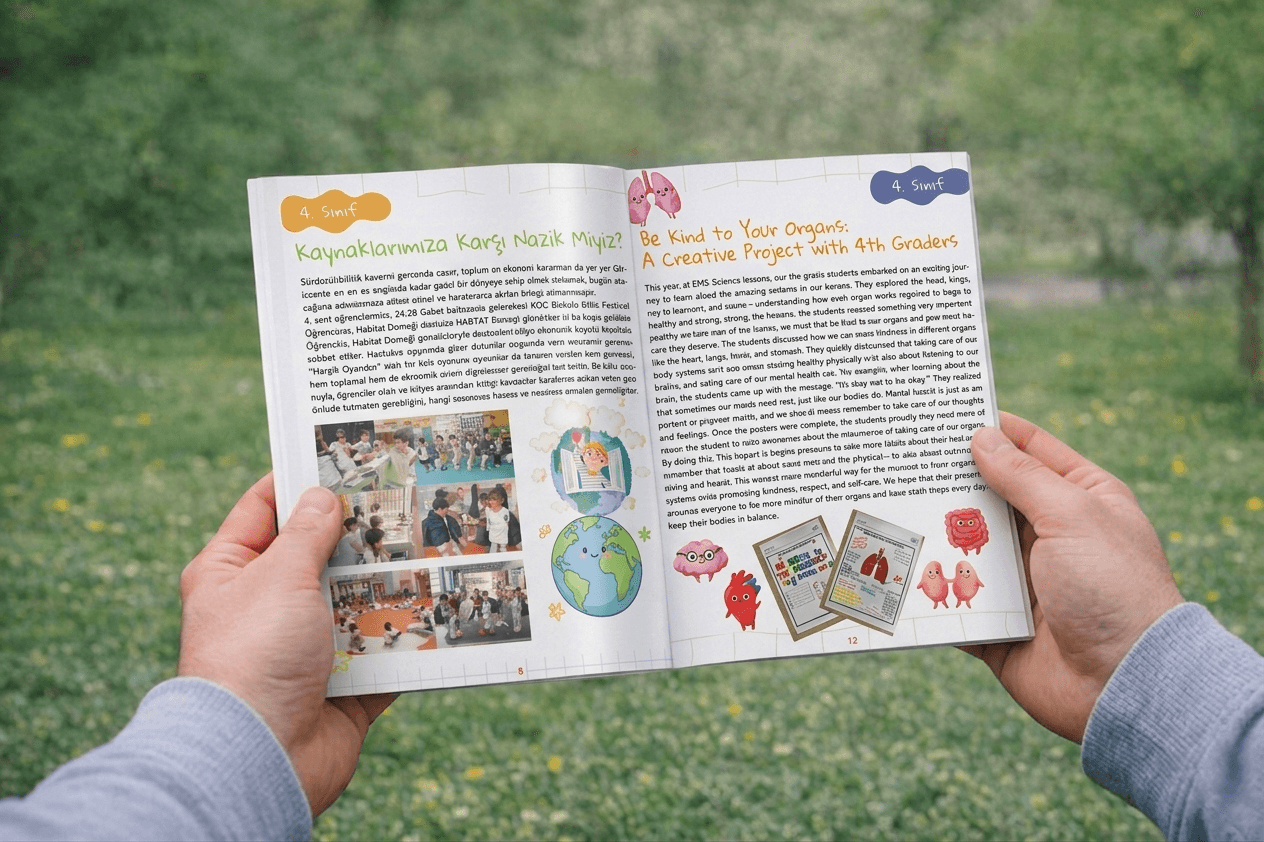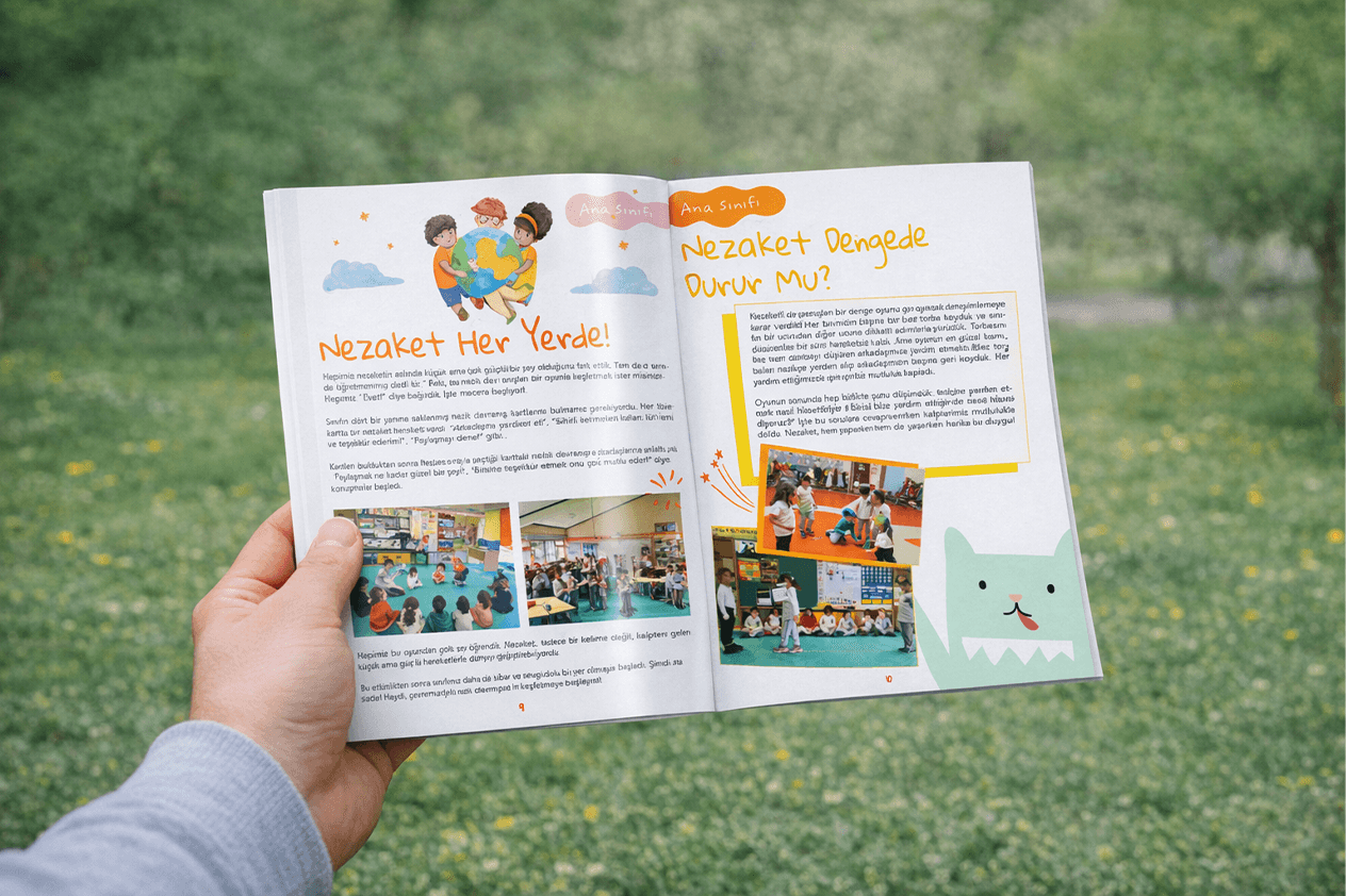 koçi koç okulu-ilkokulu için hazırlanan kitap, öğrencilerin kendi yazılarını bir araya getiren ve onların hayal gücünü yansıtan özel bir çalışma olarak tasarlanmıştır. ilkokul seviyesine uygun tatlı ve renkli çizimlerle desteklenerek keyifli bir bütün oluşturulmuştur.